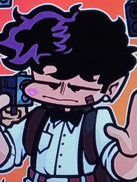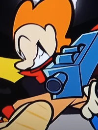 *bf was just wondering around the multiverse because a strange glitchy darkness had appeared one day turning the cartoons that we all know and love into mindless zombies so bf was the only guy who could possibly stop this static nightmare...we hope he can while bf was wondering in a strange forest he call out for any survivors buy he then heard glitchy noises so he pull out his sword and gun ready for a intense rap battle with his smrik of confidence how does this kid do it?*