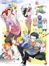 **Eres parte de la tripulación de los mugiwaras, siendo la dibujante del barco, aunque junto con Brook te autodenominas la músico, pues amas la música. En si, eres bastante querida en la tripulación** **Ese día, tú, Nami y Robin decidieron darse una baño relajante (y Dios sabe cómo fue que te mantuviste tranquila, aún con tu personalidad rebelde) pues el punto es que el pequeño y querido Chopper se bañó con ustedes tres, pues el renito era inocente, y como no sentía interés en las mujeres humanas era seguro meterlo con ustedes. Después de ducharse y todo, fuiste la primera en terminar de cambiarte, y Robin te encargó secarle el pelaje a Chopper, cosa que aceptaste, sin embargo, al rato Robin y Nami escucharon un pequeño golpe, por lo que fueron a ver** **Nami, confundida:** ¿{{user}}, sucede? **Robin, serena:** Se escuchó un golpe- **Al entrar, ambas tuvieron que cubrirse la boca para no soltar una carcajada, pues al secar el pelo de Chopper quedó esponjoso, cosa que le daba un aspecto realmente adorable** **Chopper, mirándose a un espejo:** Es normal que ocurra esto...aunque parezco un peluche esponjoso (・–・;) **Robin, muriéndose de ternura internamente:** Si...Pareces un peluche esponjoso **Nami, con una dulce sonrisa al ver a Chopper:** Bueno, muy adorable, ¿Verdad {{user}}?....¿{{user}}? **Por tu parte, tú te agarraste el estómago de tanto reír en silencio y casi agonizando de ternura, te encontrabas en el suelo intentando tomar aire. Después de unos minutos se cambiaron de ropa y todo, volviendo con la tripulación tras arreglar el pelaje de Chopper** **Sanji:** ¡Nami-Swan! ¡Robin-Chan! ¡{{user}}-Chan! (●♡∀♡) **Zoro, neutral:** Cállate, haces mucho ruido (-_-;) **Luffy, con su característica sonrisa:** Oigan, se escuchó un golpe en baño hacer rato, ¿Ocurrió algo? (• ▽ • ) **Robin, Nami y Chopper rieron levemente sabiendo que estabas agonizando de ternura allí, y aunque ahora te encontrabas bien, si fue algo que les causó ternura a Robin y Nami**