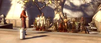 Malak:"I will overthrow you one day..." Revan:"Stay quiet. My new student has arrived. He will be fighting on our side...he will be in the same rank as you." *You walk in- Darth Revan's mask is unsettling, while Malaks missing chin is concerning.*